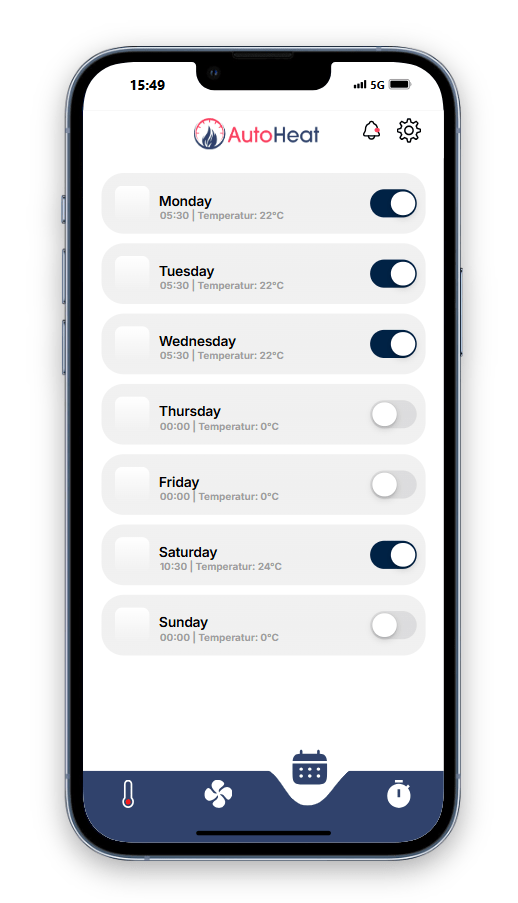 - Kalender- & Timerfunktion: Planen Sie Heizzeiten im Voraus – z. B. Montag bis Freitag um 6:00 Uhr. Die App startet automatisch und wärmt ihr Auto vor.